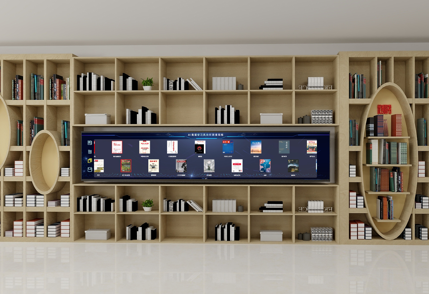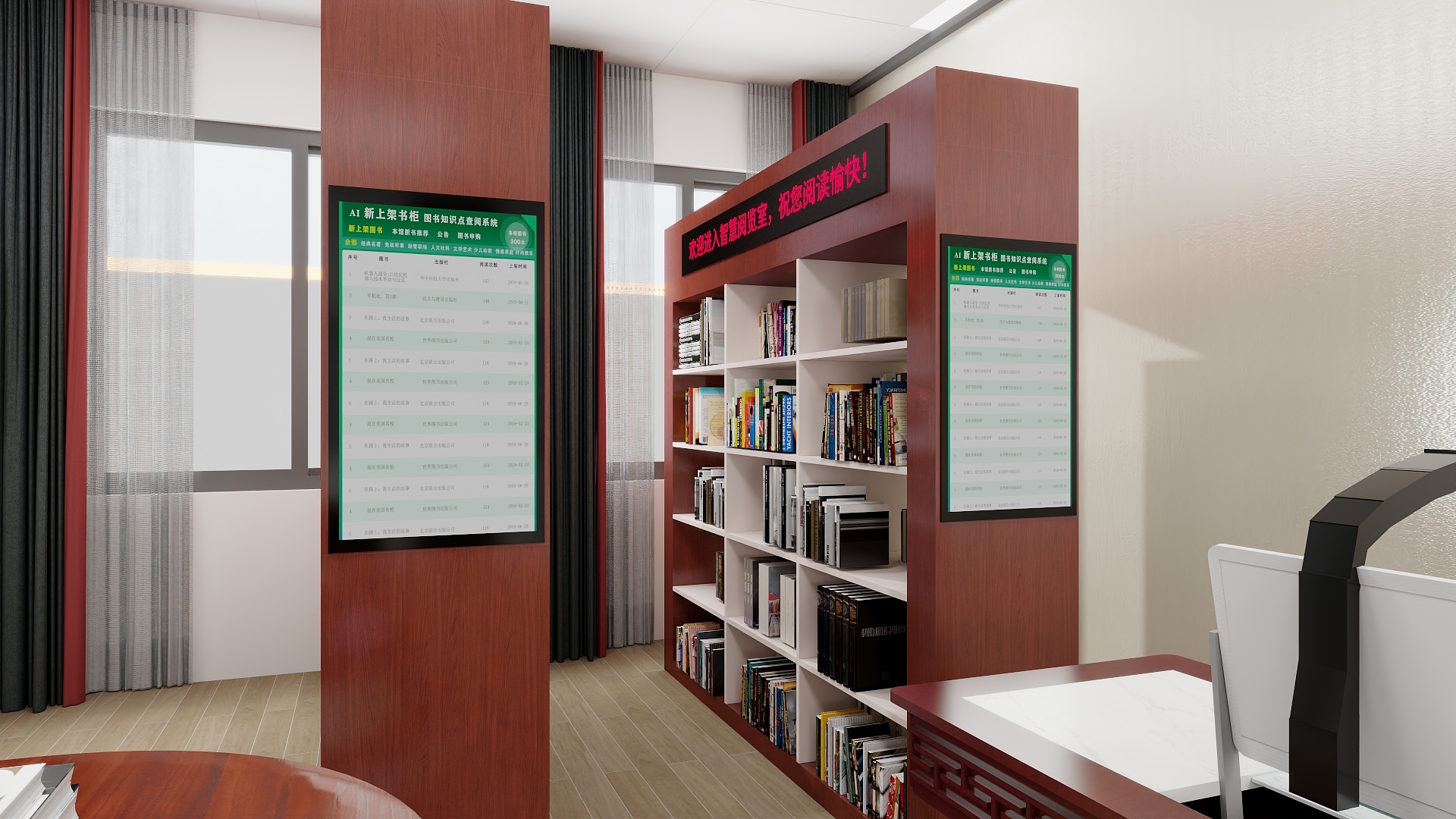 AI新上架書柜兩側都配置有觸摸顯示屏,運行《AI新上架書圖書知識點查閱系統》,用于查看書柜中每本圖書的上架來源數據,包括:被閱讀圖書、檢索出對應的新書、新書知識點的點擊次數和閱讀時長,書籍的上架時間等數據,方便讀者更加了解此書的上架必要性,更加全面的了解此書中重點突出的知識點,更加有利于閱讀學習此書。該同時支持讀者登記自己希望增加的新書信息,由圖書館管理人員負責審核購買。方便采購高頻學員真正需要的熱門書籍。 同時集成聯動1000本電子圖書、100種期刊、20種報紙及具有圖書檢索、公告、視頻、熱門書推薦、推薦知識點查閱、學員個性化學習、隨走隨薦隨學等功能。 AI新上架書系統和AI常看書系統存在一種輸入、輸出關系,AI人工智能閱覽系統統計出讀者的??磮D書,通過AI人工智能檢索系統在各家紙書供應商的最新書目、圖書內容中檢索出對應的知識點內容,再通過讀者對點擊相關文章的熱度,分析出哪些新書上的知識點比較多,而且是讀者所需要的,從而為圖書館提供一個購買新書的決策圖書目錄,圖書館依據此書目進行購買,然后上架在該書柜中。